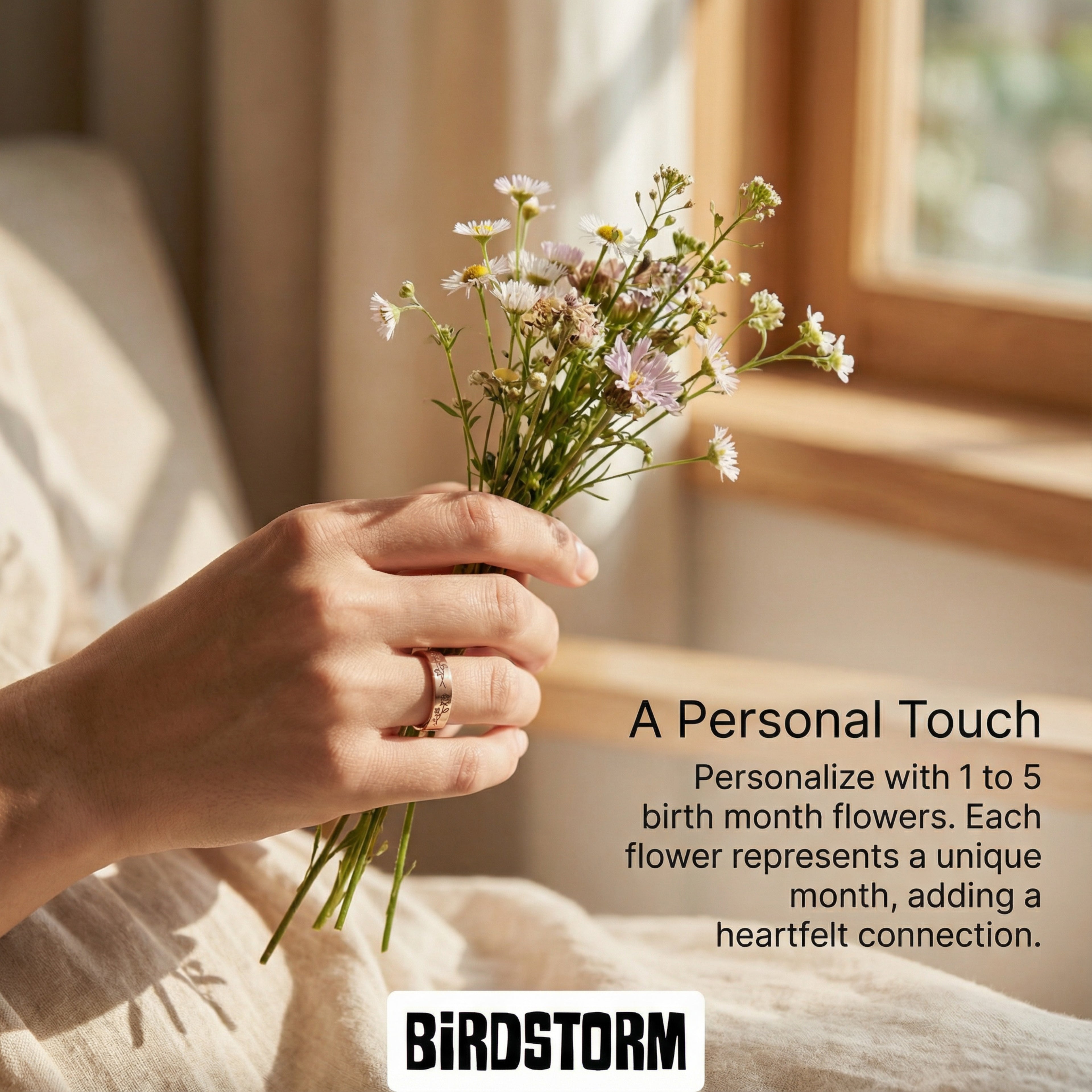 Personalized Birth Month Flowers Ring