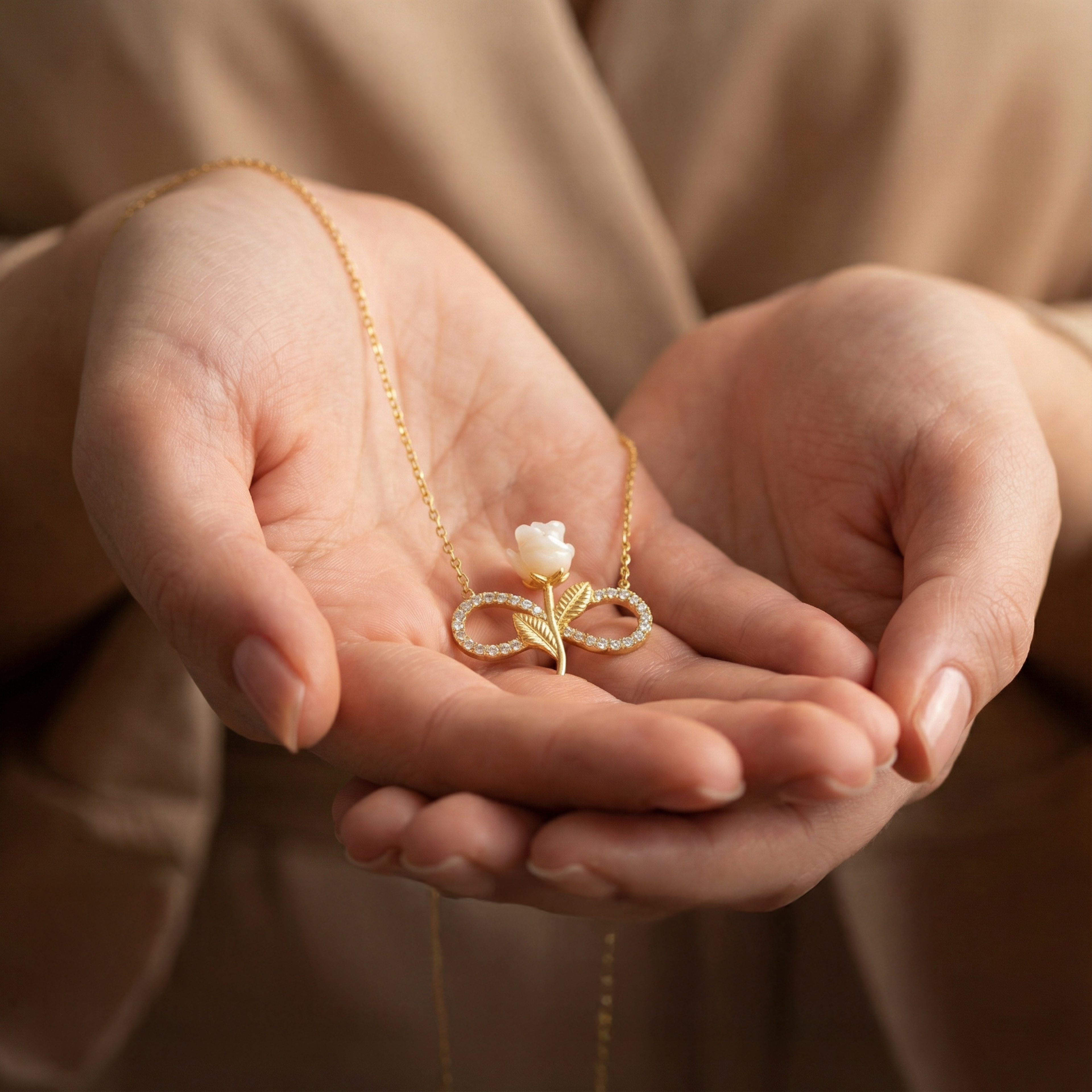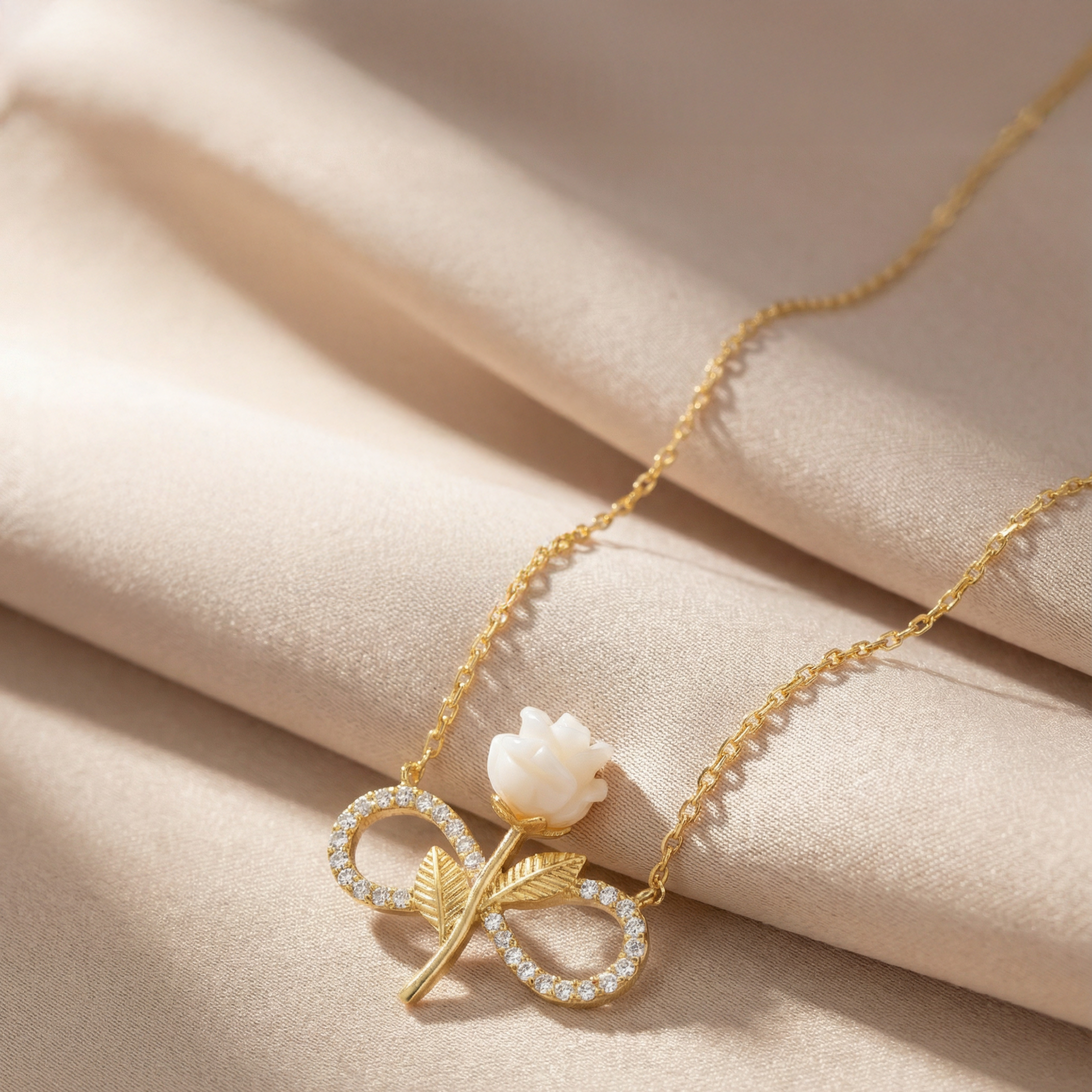 White Rose Infinity Necklace